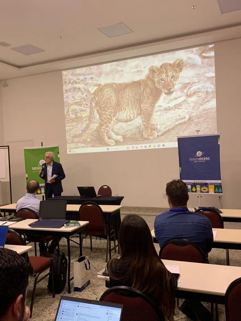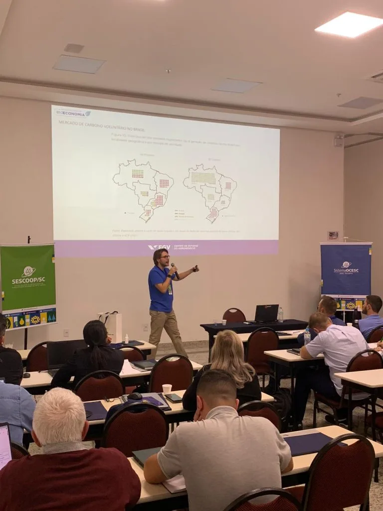 A palestra foi conduzida pela advogada e doutora em energia e sustentabilidade, Maria João Rolim. Maria apresentou o histórico da política nacional de mudança do clima e proporcionou aos presentes um entendimento detalhado das regulamentações e políticas que moldam a atuação das empresas e cooperativas no Brasil.